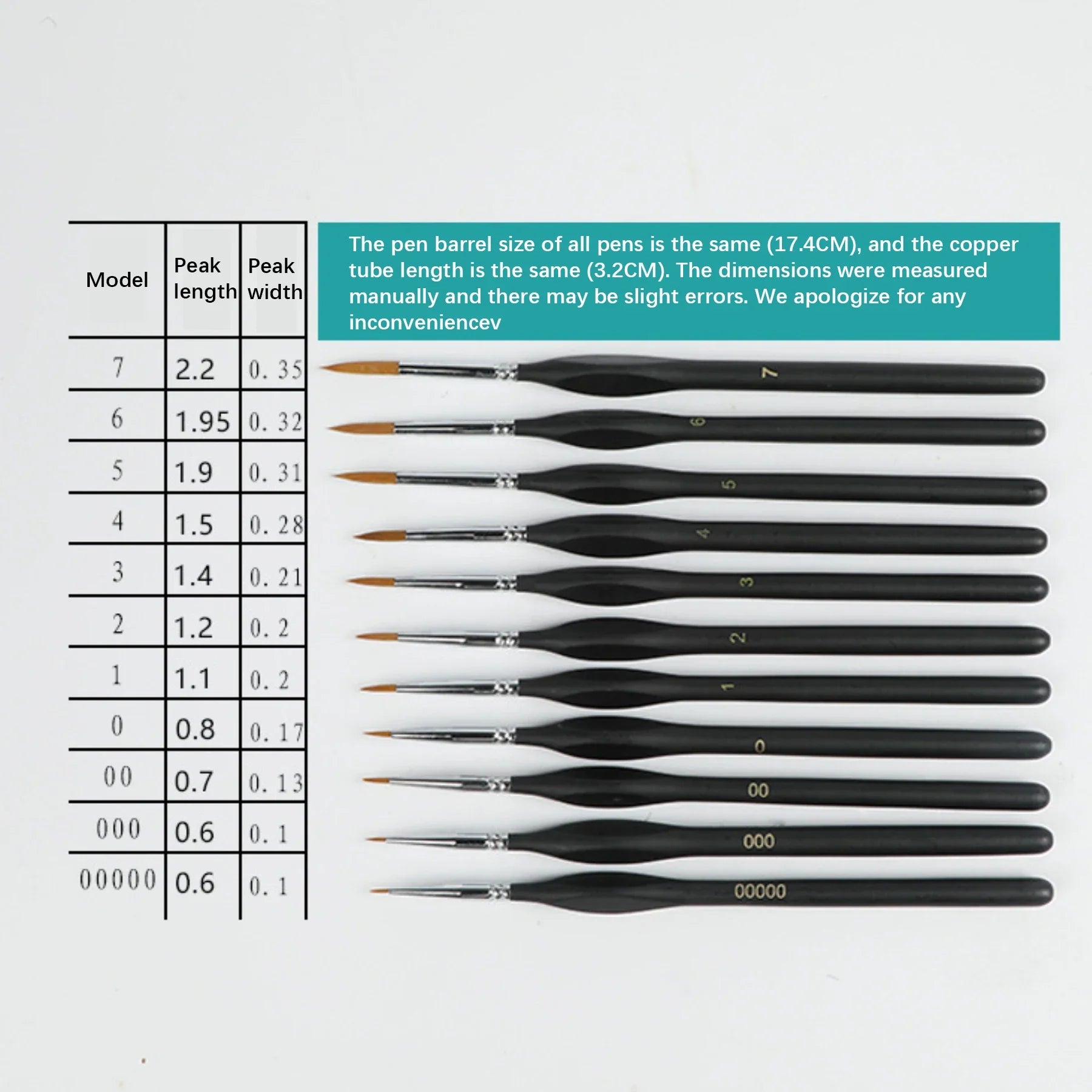 Fine Tip Nylon Paint Brush Set For Acrylic And Miniatures