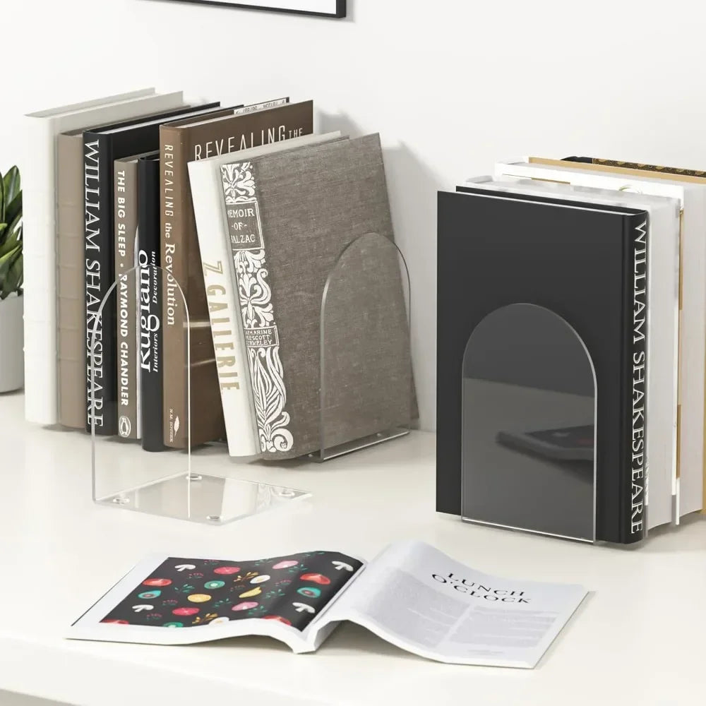 Keep your shelves pristine with the Hign-concerned 4-Piece Acrylic Bookend Set that blends seamlessly into any space.