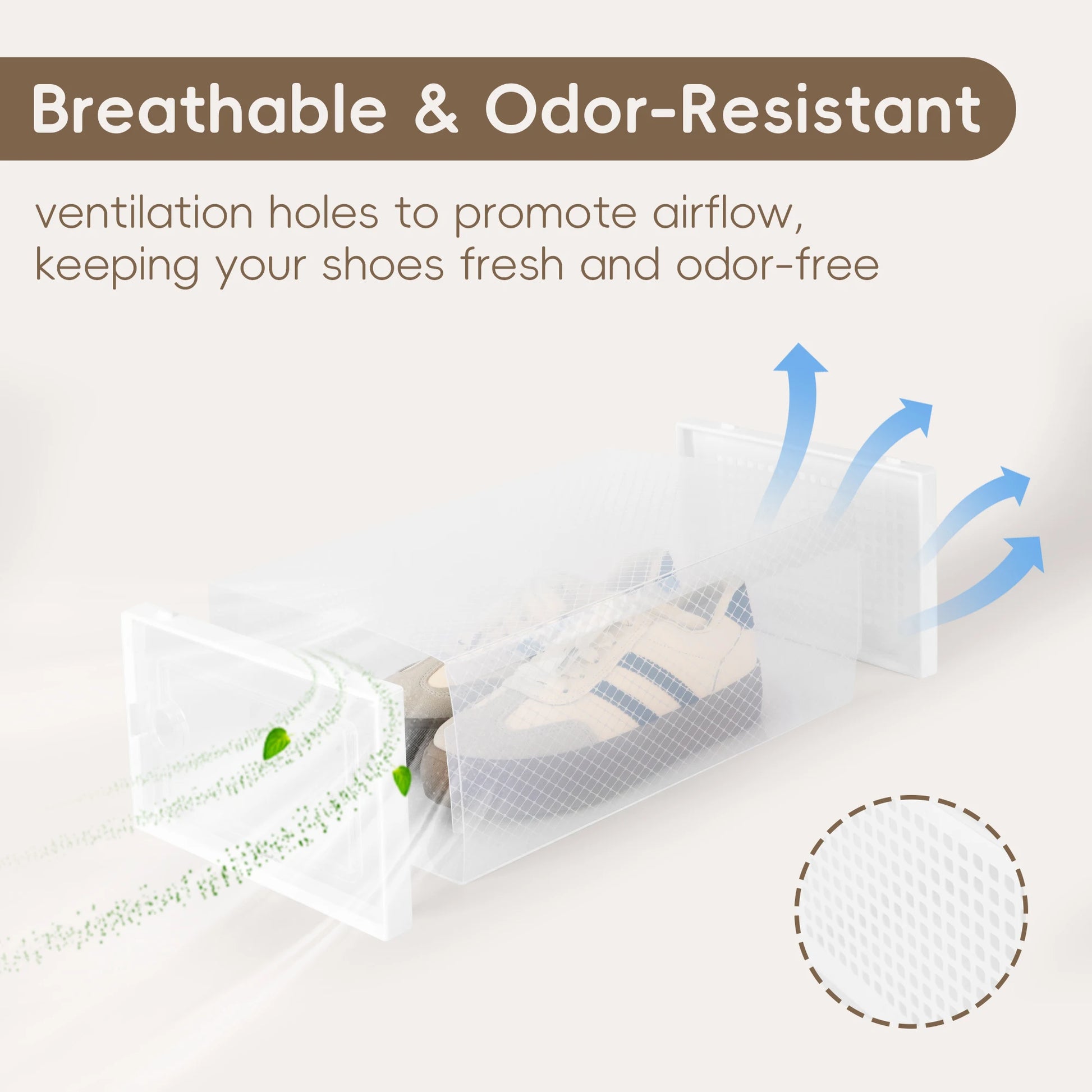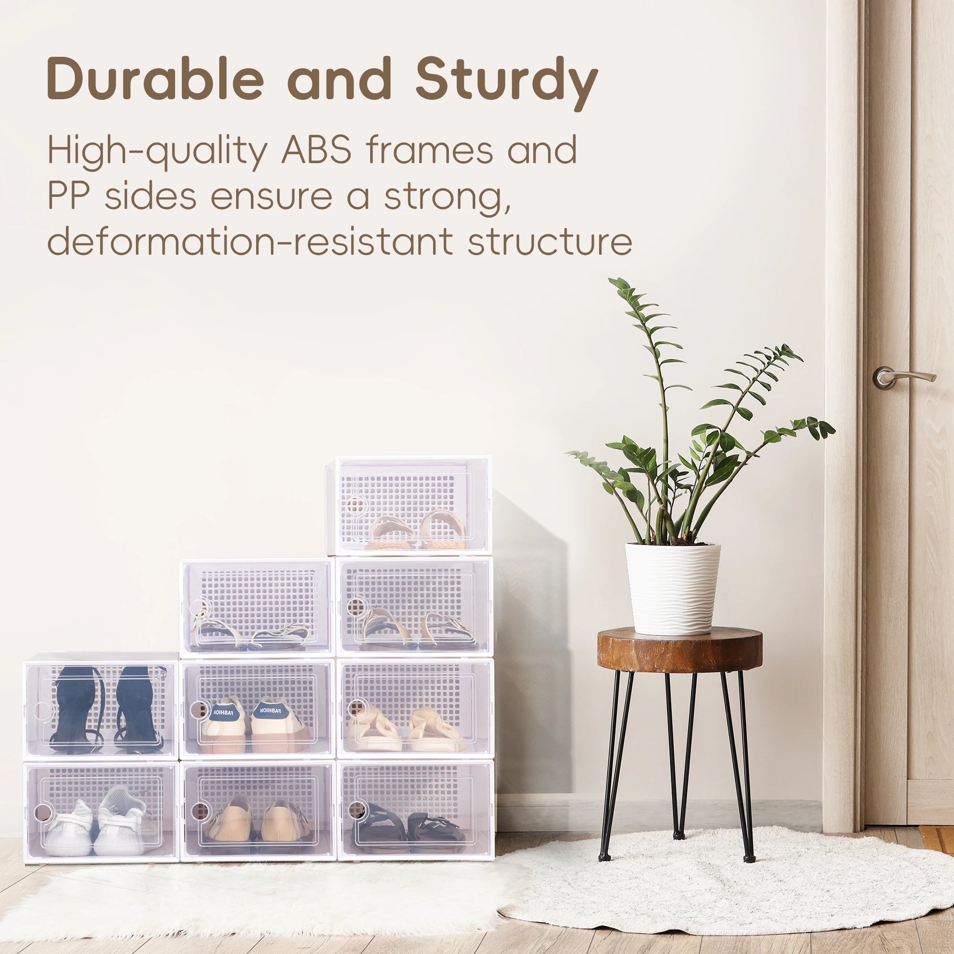 - You get clear, stackable shoe boxes that let you see contents at a glance, protect footwear, and dramatically reduce closet clutter, and keep contents fresh between uses.