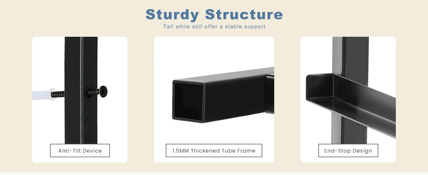 - Large capacity with sturdy construction: MDF boards, steel frame, cross supports, and a 66 lb full-load rating; anti-tipping hardware and four adjustable feet help you keep it stable on uneven floors.