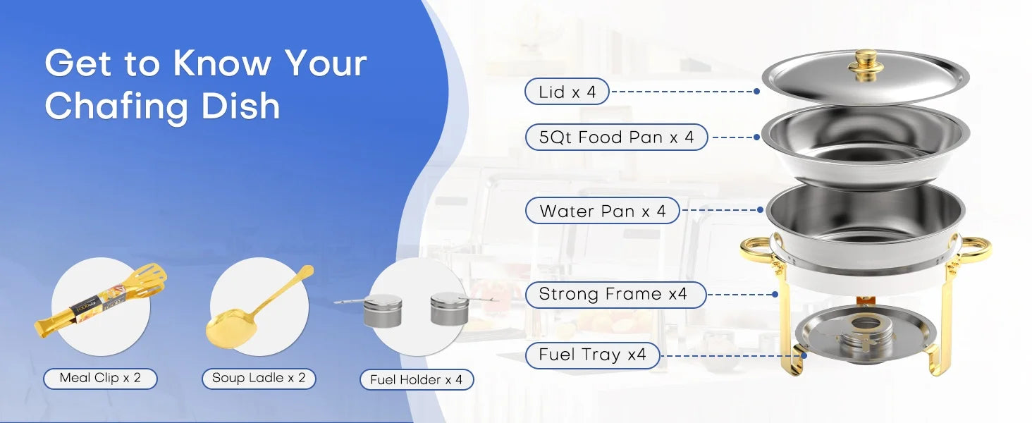 Keep every dish at the perfect temperature and present it with restaurant-grade polish using ROOMARK's chafing dish buffet set.