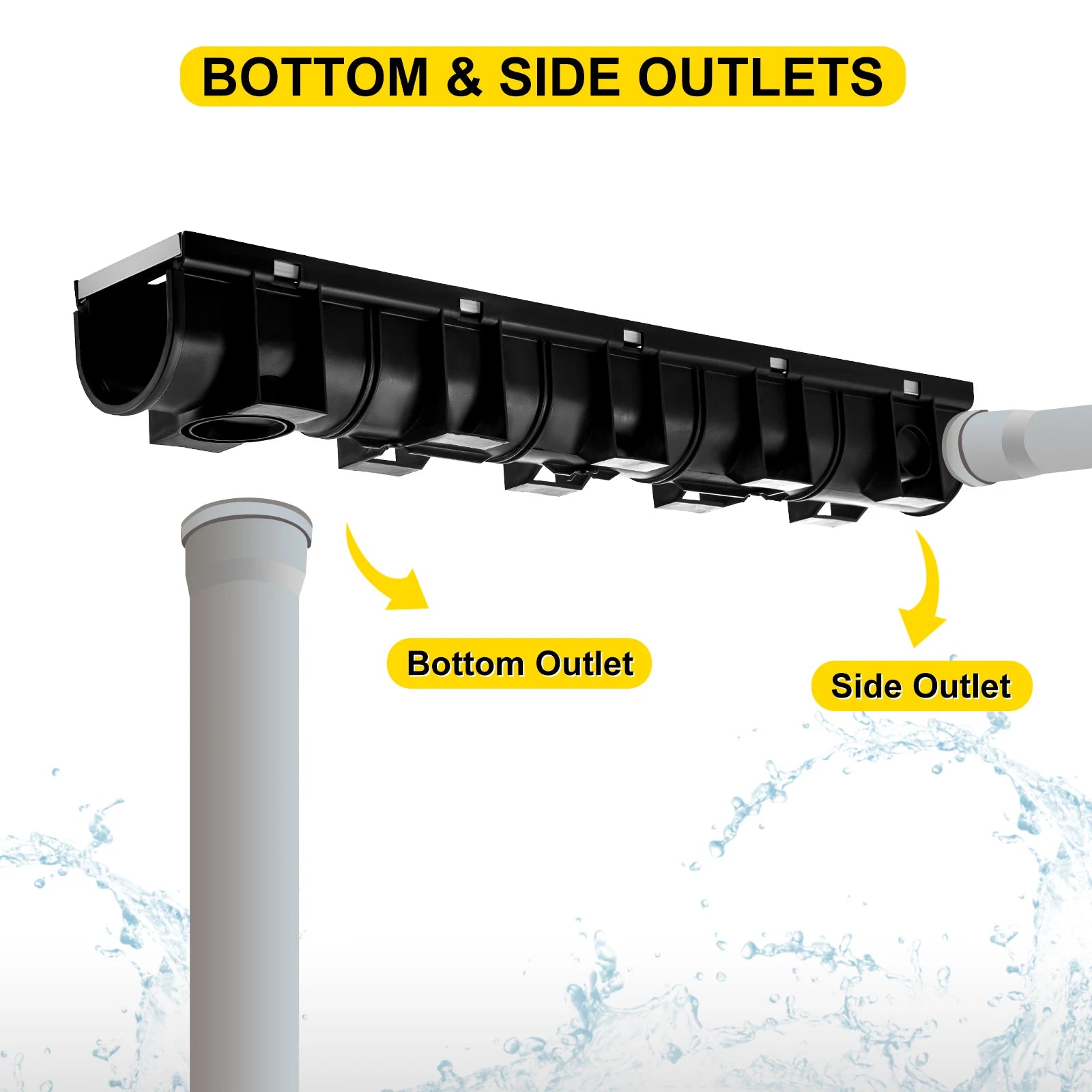 - Modular, low-profile design: each 1-meter section interlocks with others to create a seamless drainage run that fits your driveway, garden, pool, and walkway—no special tools required.